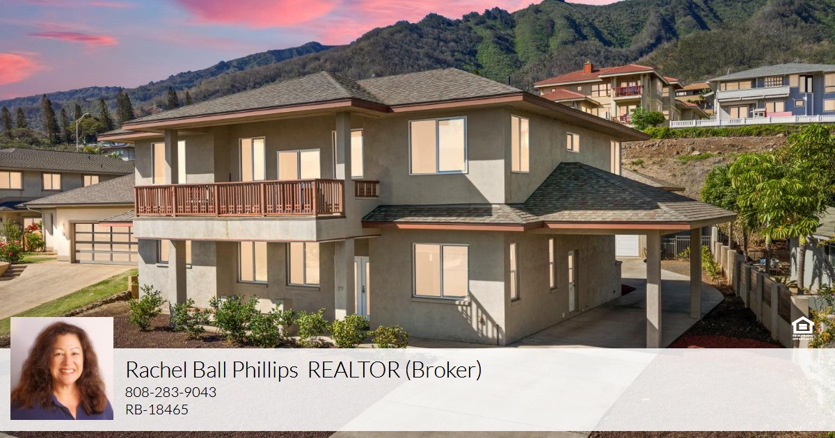 Situated on a quiet cul-de-sac within the gated community of Koa at Kehalani, this impressive two-story stucco residence offers an exceptional blend of space, comfort, and island elegance. The property is energy efficient with an owned 32 panel net metered photovoltaic system and solar hot water system bringing the average electricity cost to $32/month for the current owners. Encompassing 3,294 square feet of living area, the home features five bedrooms and four and a half baths, highlighted by soaring vaulted ceilings and thoughtful architectural details throughout. Enter through striking glass double entry doors into a main level designed for both everyday living and elegant gatherings. This level includes a great room, formal living room, formal dining room, breakfast nook, and a beautifully appointed kitchen with granite countertops, stainless steel appliances, and rich wood cabinetry. The kitchen is enhanced by a corner sink framed by mitered glass windows. A convenient laundry room with matching cabinetry and a laundry sink is located just off the kitchen, along with an additional half bath for guests. The spacious first-floor primary suite is a private retreat, featuring a sitting area with a bay window, direct access to a covered lanai, and a luxurious en-suite bath with a large walk-in closet, jetted tub, separate shower, enclosed toilet room, and dual vanities with vessel sinks. The lower lanai provides an inviting setting for relaxing or entertaining in the island breeze. Upstairs, you will find four bedrooms and three full baths, including one bedroom with an en-suite bath and two bedrooms connected by a Jack-and-Jill bath. A versatile loft area opens to a spacious, tiled covered lanai, offering the perfect vantage point to enjoy stunning Haleakala and ocean views. Additional features include a porte cochère, fenced back and side yards, and an expansive 880-square-foot detached four-car garage with its own half bath. This exceptional home combines generous living spaces, quality finishes, and beautiful island views in one of Kehalani’s most desirable gated neighborhoods.